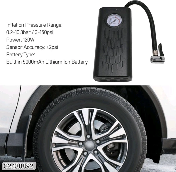Product Name: Portable Air Compressor Tire InflatorPackage Contain: Pack Of 1Material - Power SourceBattery PoweredOperation - ModeAutomaticCombo: Pack of 1LBH - 25*20*15Weight - 440gram